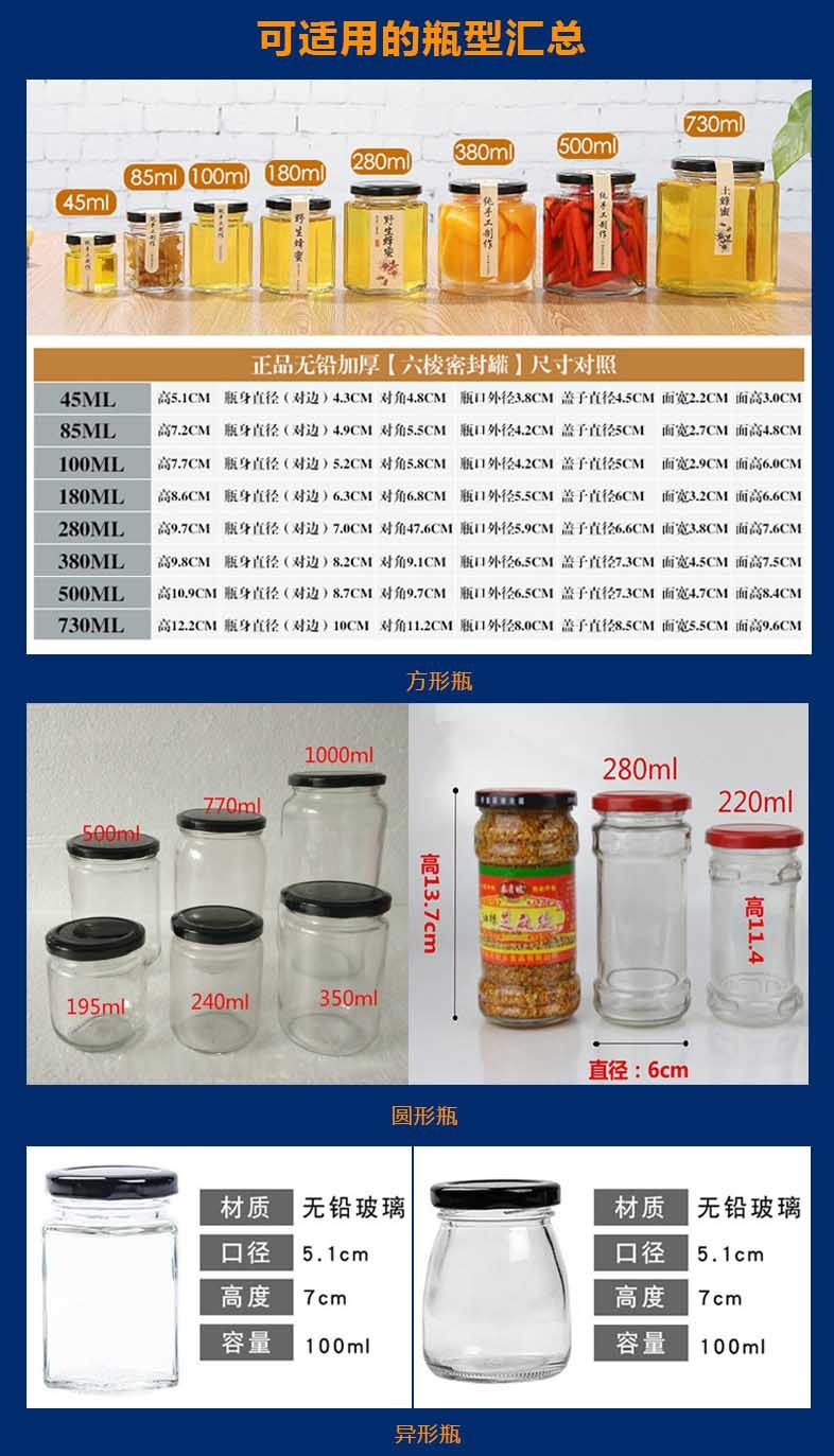 6.旋蓋機構(gòu)高度可快速調(diào)節(jié),可適用相同口徑、不同高度的瓶子旋蓋;更換部分零件即可實現(xiàn)不同瓶徑、不同口徑的旋蓋,更換快捷方便。