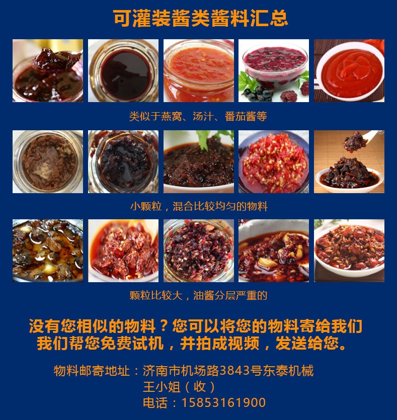 設(shè)備簡介 該生產(chǎn)線適合中小口徑三旋、四旋玻璃瓶調(diào)味醬的分裝,適合醬料、含顆粒黏稠物料的灌裝,物料接觸部分均采用316不銹鋼,整機304不銹鋼,符合食品衛(wèi)生標(biāo)準(zhǔn)。該機設(shè)計合理,機型小巧,立式結(jié)構(gòu),節(jié)省